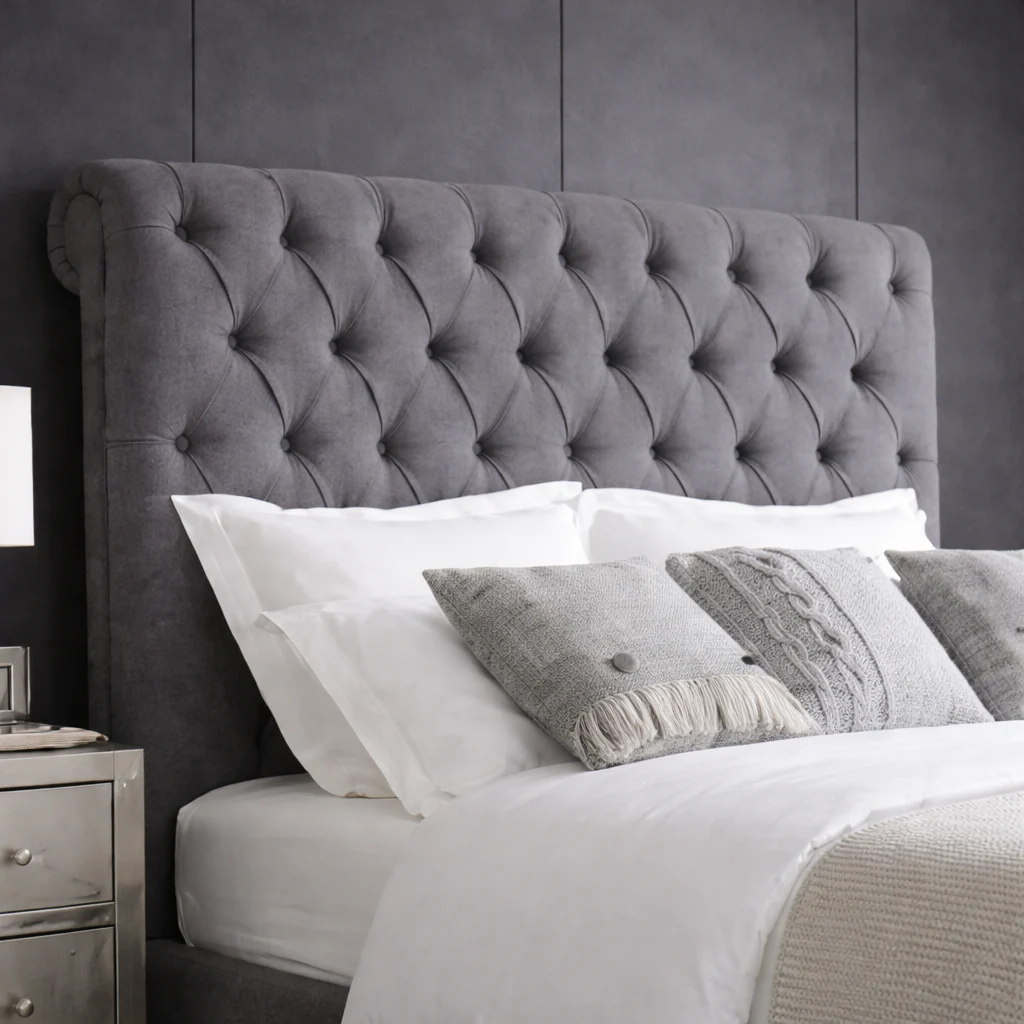 The Giselle is a traditional fabric sleigh bed, featuring individually pleated buttons and a beautifully scrolled footboard.
